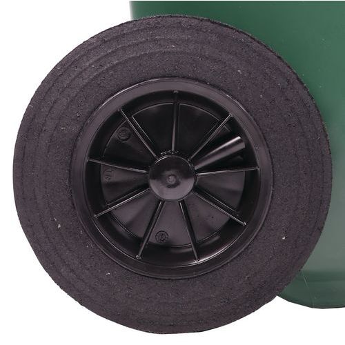 Contentor de lixo prático e manuseável graças às pegas e rodas sólidas. Disponível em diversas cores para facilitar a triagem de resíduos e a identificação do conteúdo. Rodas integrais de 200 mm de diâmetro. Em polietileno de alta densidade de grande qualidade. Resistente a raios UV e a impactos. Contentor resistente a agentes químicos e protegido contra insetos nocivos. Não absorve líquidos, é lavável e esterilizável.