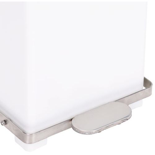 A tampa tem um sistema de fecho suave. O caixote de lixo com pedal inclui um suporte para sacos. A estrutura do caixote de lixo está fixa nos pés. Garantia do cliente de 10 anos. Todos os produtos Manutan são testados e aprovados pelas nossas equipas.
