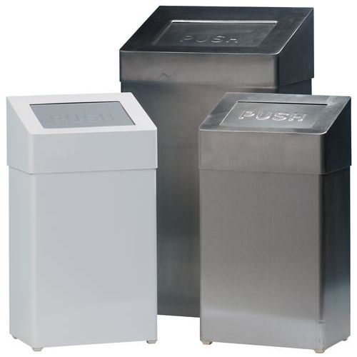 | Nome do artigo | Caixote de lixo metálico, Capacidade: 18 L, Abertura: Para empurrar, Material: Metal |