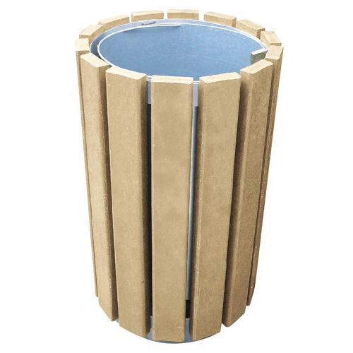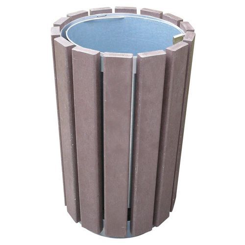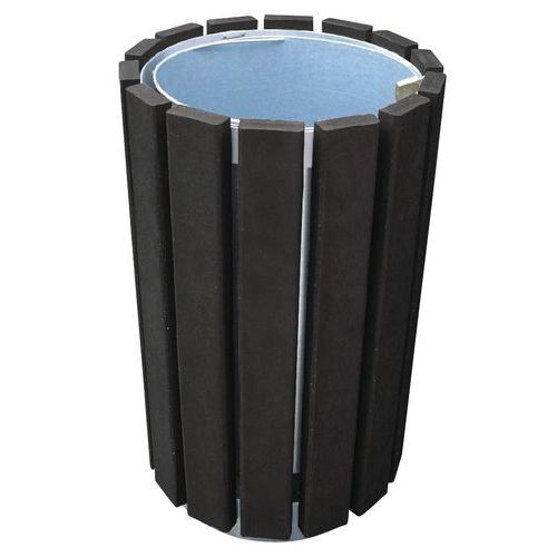 - Caixote de lixo redondo sem tampa com ripas em plástico reciclado de 30 mm de espessura.