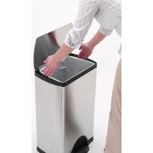 - Caixote do lixo com pedal design, modelo retangular.