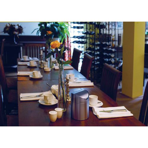 | Nome do artigo | Caixote do lixo de mesa, Capacidade: 1.5 L, Abertura: Com pedal, Material: Metal, Material: Inox |
