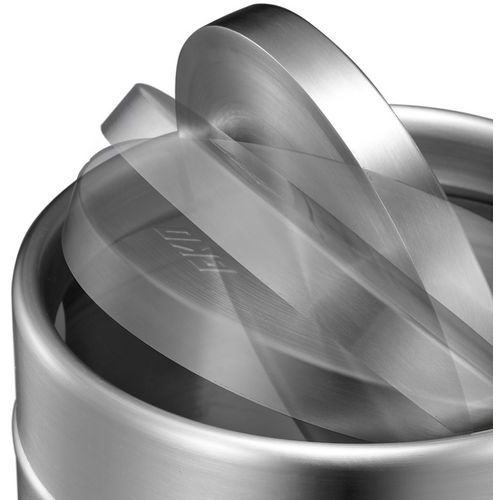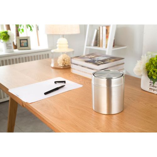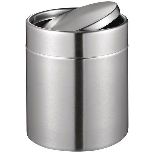 Um design elegante para este pequeno caixote do lixo de mesa em inox mate.