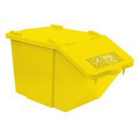 As caixas possuem diferentes cores para a triagem fácil dos resíduos.
