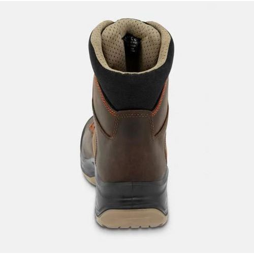 Calçado de segurança de cano alto S3S para profissionais da construção civil, ideal para utilização no estaleiro. O cano alto proporciona um suporte ideal do tornozelo e uma proteção reforçada. Calcanhar elevado com sistema de aderência LG para facilitar a subida de degraus e a estabilidade. Forro em malha 3D respirável para um conforto acrescido ao longo do dia. Em conformidade com as normas de segurança S3S para proteção contra riscos de esmagamento, perfuração e escorregamento.