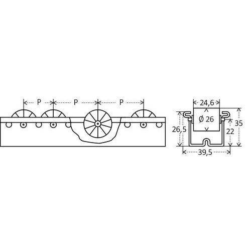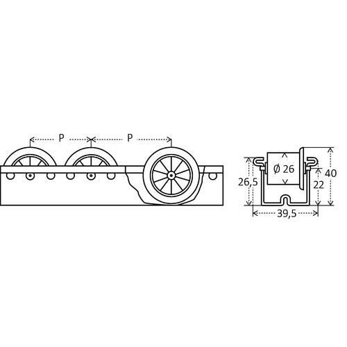 Calha de roletes de plástico para cargas leves – 2000 mm de comprimento – Bito