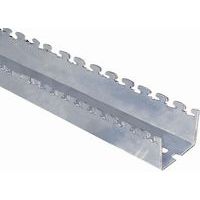 Calha com perfil suspenso perfurado em intervalos de 24 mm para fixação.