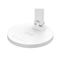 Candeeiro de secretária tecnológico Atias com braço regulável e dobrável. Integra um temporizador de modo de suspensão automático. Carregador sem fios (5 W) por indução. Porta USB adicional localizada na parte posterior. Possibilidade de variar a temperatura da cor e a intensidade da luz.