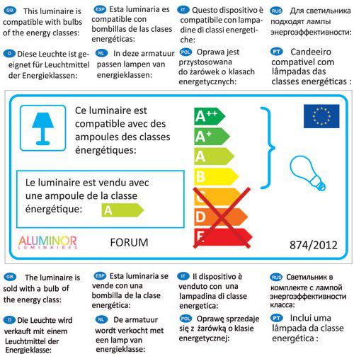 | Nome do artigo | Candeeiro Forum, Classe energética: A, Tipo de lâmpada: Lâmpada ou módulo led, N.º de lâmpadas: 1 |