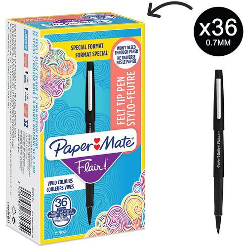 Caneta de feltro Flair Original – Formato económico 30+6 – Papermate, Tinta cor: Preto, N.º de peças: 36
