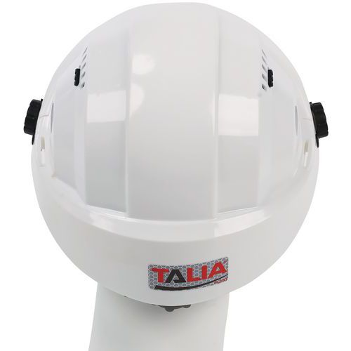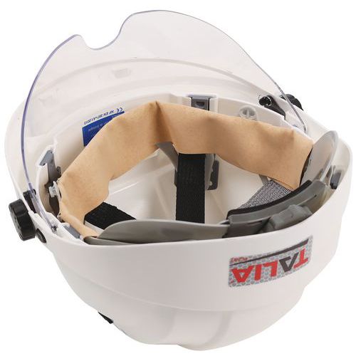 Capacete Orizon com estrutura em PE HD e óculos de proteção.