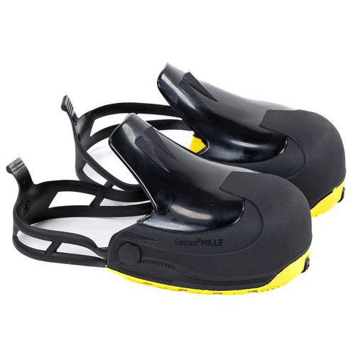 Capas de segurança para calçado elegantes, com biqueira em material compósito. Tamanho facilmente identificável graças à biqueira amarela, laranja ou azul. Sola para caminhar resistente à abrasão e aos hidrocarbonetos. Ultraleve e não magnética. Material lavável e impermeável.