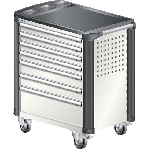 Carro de oficina L3627 plástico com cantos – 7 gavetas – Lista, Carga máx.: 400 kg, Nº de gavetas: 7