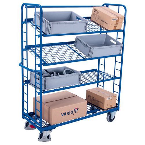 Carro alto ergonómico com 4 plataformas gradeadas – Capacidades de 250 e 400 kg