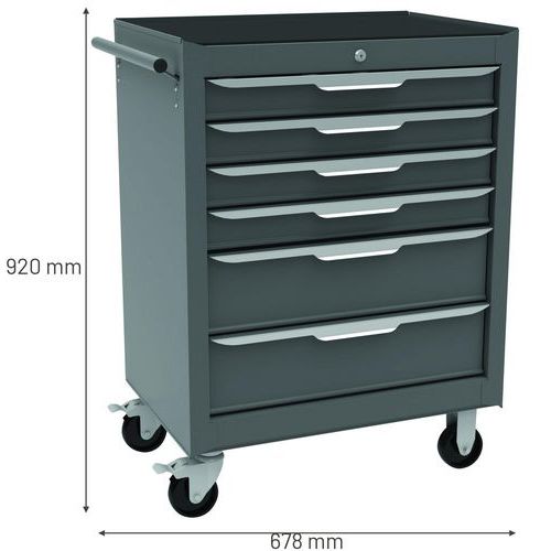 | Nome do artigo | Carro com 6 gavetas e 80 ferramentas – Manutan Expert, Carga máx.: 300 kg, Gaveta carga máx.: 30 kg |