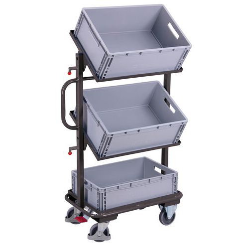 | Nome do artigo | Carro com caixas de norma europeia – 610 x 410 mm – Capacidade de 200 kg, Capacidade: 200 kg |