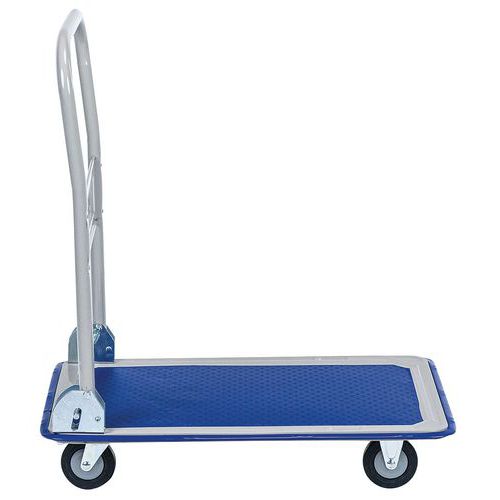 Carro compacto em metal com espaldar rebatível. Plataforma com revestimento em plástico antiderrapante, para evitar a queda das cargas. Leve e com excelente manobrabilidade, ideal para o transporte de mercadorias de forma fácil e segura. Versátil, é adequado para transportar cargas volumosas ou pesadas. Capacidade (kg) : 300 Garantia do cliente : 10 anos
