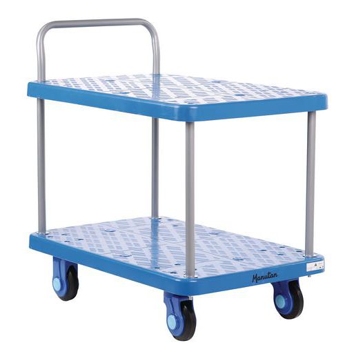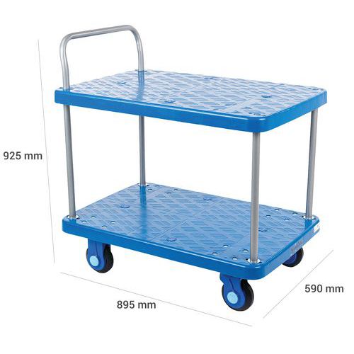 | Nome do artigo | Carro de plástico com 2 plataformas, capacidade de carga de 300 kg, Capacidade: 300 kg, Altura total: 925 mm |