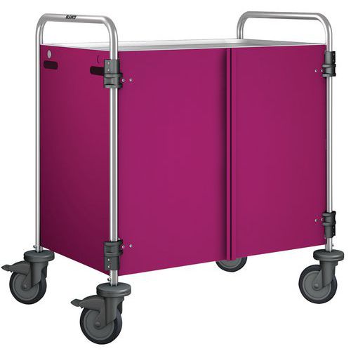 - Carro de serviço robusto em aço inoxidável com proteções contra impactos.