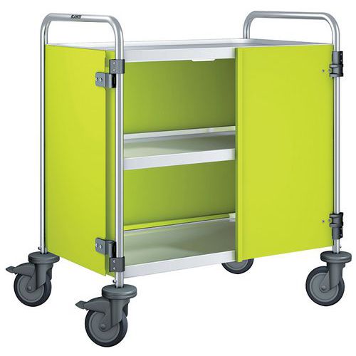 - Carro de serviço robusto em aço inoxidável com proteções contra impactos.