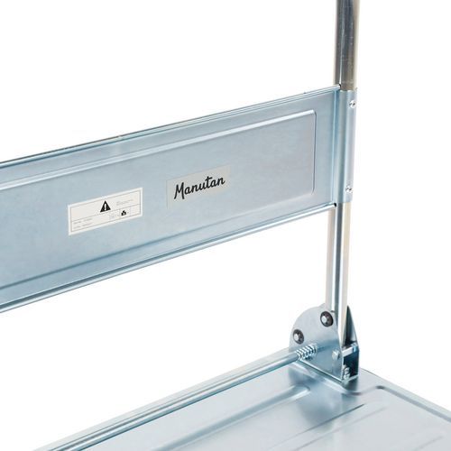 | Nome do artigo | Carro em aço com espaldar rebatível – Capacidade de 350 kg, Capacidade: 350 kg, Altura total: 860 mm |