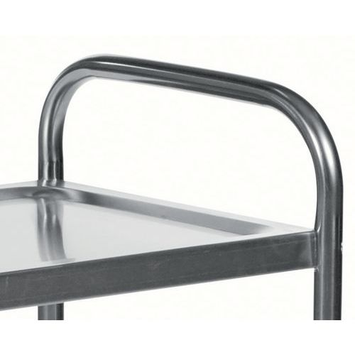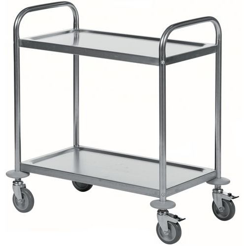 | Nome do artigo | Carro em inox – 2 plataformas – capacidade de 100 kg, Capacidade: 100 kg, Altura total: 805 mm |