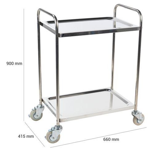 | Nome do artigo | Carro em inox, Capacidade: 100 kg, Altura total: 900 mm, Largura total: 415 mm, Comprimento total: 660 mm |