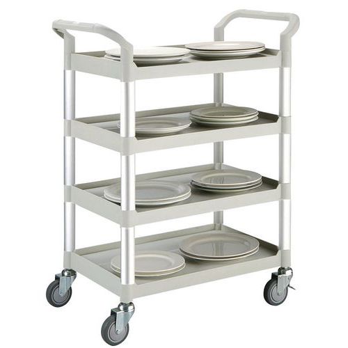 | Nome do artigo | Carro em polipropileno – 4 plataformas – capacidade de 250 kg, Capacidade: 250 kg, Altura total: 1080 mm |