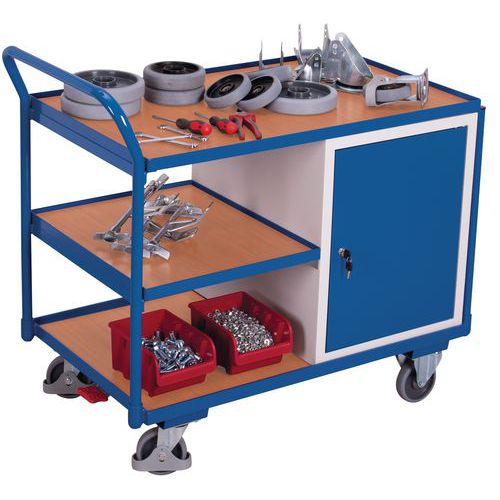 | Nome do artigo | Carro ergonómico com 3 plataformas em madeira e bloco-cofre – Capacidade de carga de 250 kg |