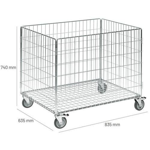 | Nome do artigo | Carro gradeado – capacidade de 60 kg, Rodízio Ø: 100 mm, Capacidade: 60 kg, Altura total: 740 mm |