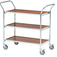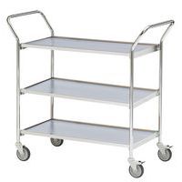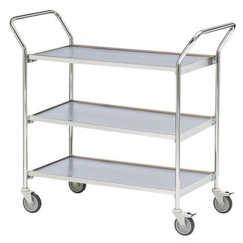 Carro móvel de 1000x420 mm com acabamento cromado, 3 plataformas e 2 pegas de manobra.