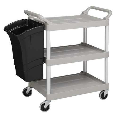 | Nome do artigo | Carro de serviço de plástico, 3 plataformas, 90 kg – Rubbermaid, Capacidade: 90 kg, Altura total: 959 mm |
