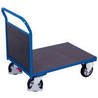 - A estrutura robusta, o quadro em aço e o espaldar tubular fixo em aço garantem uma elevada durabilidade e resistência a toda a prova. A plataforma proporciona espaço suficiente para transportar uma variedade de produtos. Equipada com 2 rodízios giratórios com travão e 2 rodízios fixos, é fácil de manobrar e segura. As rodas com revestimento em TPU (poliuretano termoplástico) oferecem uma excelente resistência ao desgaste e uma rodagem silenciosa.
