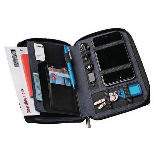 Carteira de viagem com bateria externa, Cores: Azul, Largura: 14 cm, Altura: 2.8 cm, Profundidade: 24.2 cm