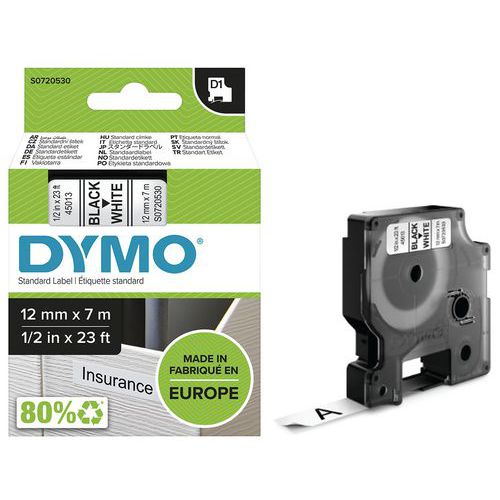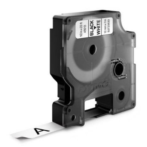Cassete de fita D1 com 12 mm de largura – Dymo, Fundo cor: Branco, Tipo: 45013, Comp.: 7 m, Fita comp.: 7 m Cassete de fita D1 com 12 mm de largura – Dymo, Fundo cor: Branco, Tipo: 45013, Comp.: 7 m, Fita comp.: 7 m