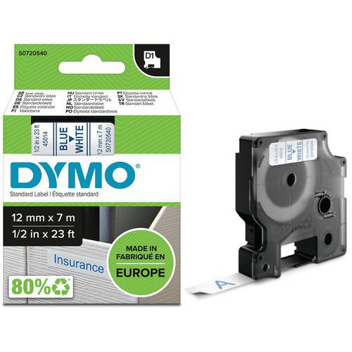 Cassete de fita D1 com 12 mm de largura – Dymo, Fundo cor: Branco, Tipo de produto: 45014, Fita comp.: 7 m Cassete de fita D1 com 12 mm de largura – Dymo, Fundo cor: Branco, Tipo de produto: 45014, Fita comp.: 7 m