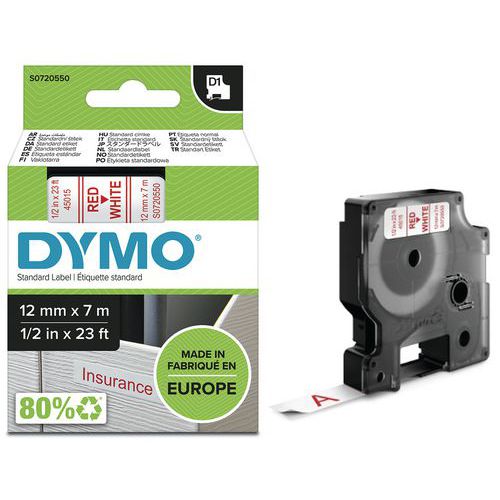 Cassete de fita D1 com 12 mm de largura – Dymo, Fundo cor: Branco, Tipo de produto: 45015, Fita comp.: 7 m Cassete de fita D1 com 12 mm de largura – Dymo, Fundo cor: Branco, Tipo de produto: 45015, Fita comp.: 7 m