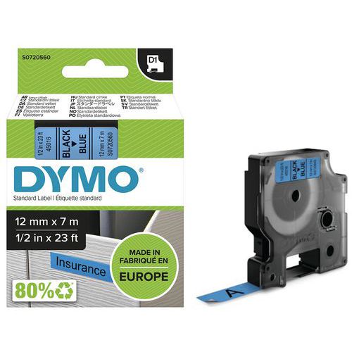 Cassete de fita D1 com 12 mm de largura – Dymo, Fundo cor: Azul, Tipo de produto: 45016, Fita comp.: 7 m Cassete de fita D1 com 12 mm de largura – Dymo, Fundo cor: Azul, Tipo de produto: 45016, Fita comp.: 7 m