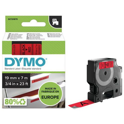 Cassete de fita D1 com 19 mm de largura – Dymo, Fundo cor: Vermelho, Tipo de produto: S0720870 Cassete de fita D1 com 19 mm de largura – Dymo, Fundo cor: Vermelho, Tipo de produto: S0720870