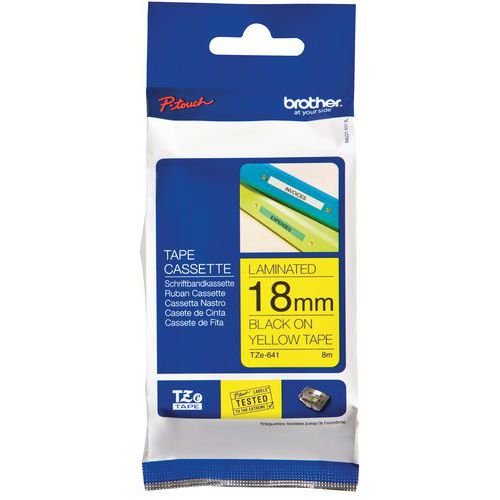 Cassete de fita para etiquetadora Brother – 18 mm de largura, Fundo cor: Amarelo, Tipo de produto: TZE-641