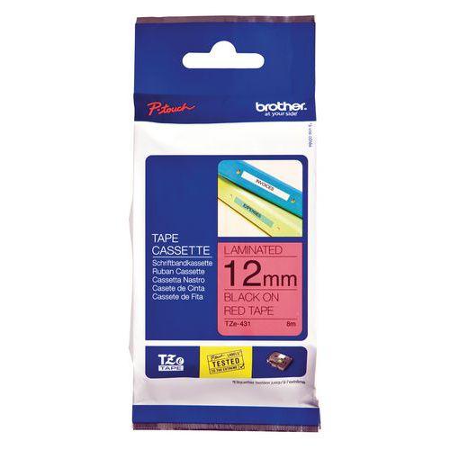 Cassetes de fita para máquina de etiquetar Brother, Fundo cor: Vermelho, Tipo de produto: TZE-431
