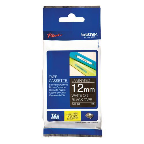 Cassetes de fita para máquina de etiquetar Brother, Fundo cor: Preto, Tipo: TZE-335, Fita comp.: 8 m