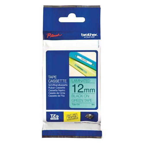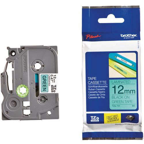 Cassetes de fita para máquina de etiquetar Brother, Fundo cor: Verde, Tipo de produto: TZE-731