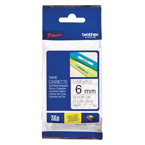 Cassetes de fita para máquina de etiquetar Brother, Fundo cor: Transparente, Tipo de produto: TZE-111