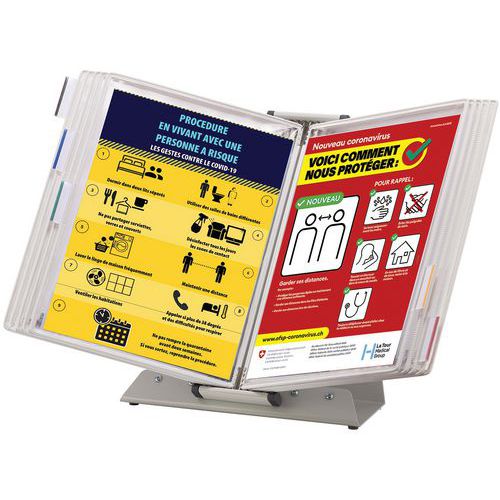 - Kit de cavalete antimicrobiano com pivot para apresentação higiénica de documentos.