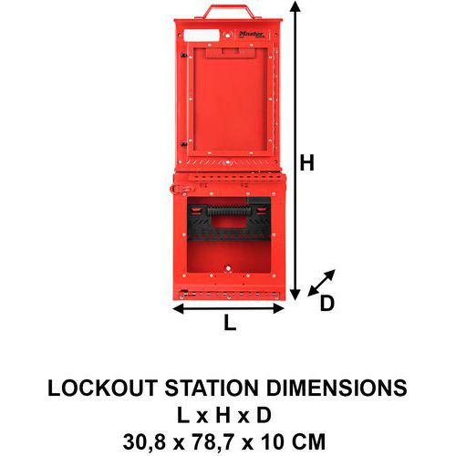 A caixa de segurança de grupo inclui um suporte para 12 cadeados, um tabuleiro de chaves amovível e 12 orifícios externos para cadeados pessoais, e ainda mais um para o cadeado de controlo.
