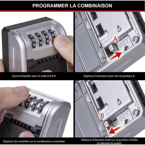 - Combinação programável de 4 dígitos com botões grandes (até 1000 códigos disponíveis).