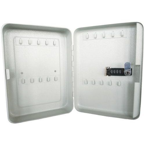 Chaveiro com fechadura com código e com chave. Acabamento com tinta em pó duradoura de elevada qualidade. Para garantir uma proteção ideal, foi concebido com uma fechadura com um código de combinação através de botão de pressão mecânico. Foi concebido para proteger todas as suas chaves no trabalho ou em casa. Disponível em várias versões (capacidade para 20 a 100 chaves).