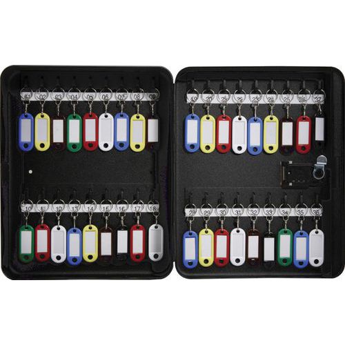 | Nome do artigo | Chaveiro com fechadura com combinação – 36 chaves – Sign, Material: Aço, Altura total: 93 mm |