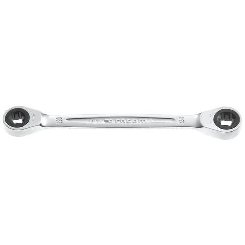 ULTRA FINA : A cabeça de luneta compacta substitui perfeitamente a associação «roquete - chave de caixa» e oferece as funcionalidades de um roquete ultra fino. COMPACTA : Sistema de roquete integrado numa cabeça de luneta compacta. 2 dimensões por chave.